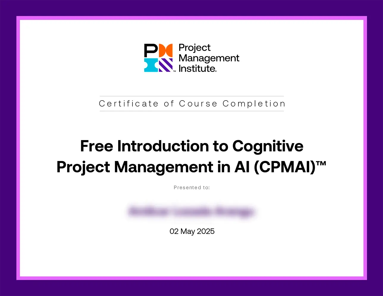 CPMAI — управление проектами в сфере ИИ. Наличие данного сертификата означает что его владелец обладает навыками для успешной реализации ИИ-проектов. CPMAI предоставляет профессионалам структурированную методологию для эффективного управления проектами в области искусственного интеллекта. Владелец сертификата владеет лучшими практиками управления проектами и новейшим технологиям, таким как генеративный ИИ.